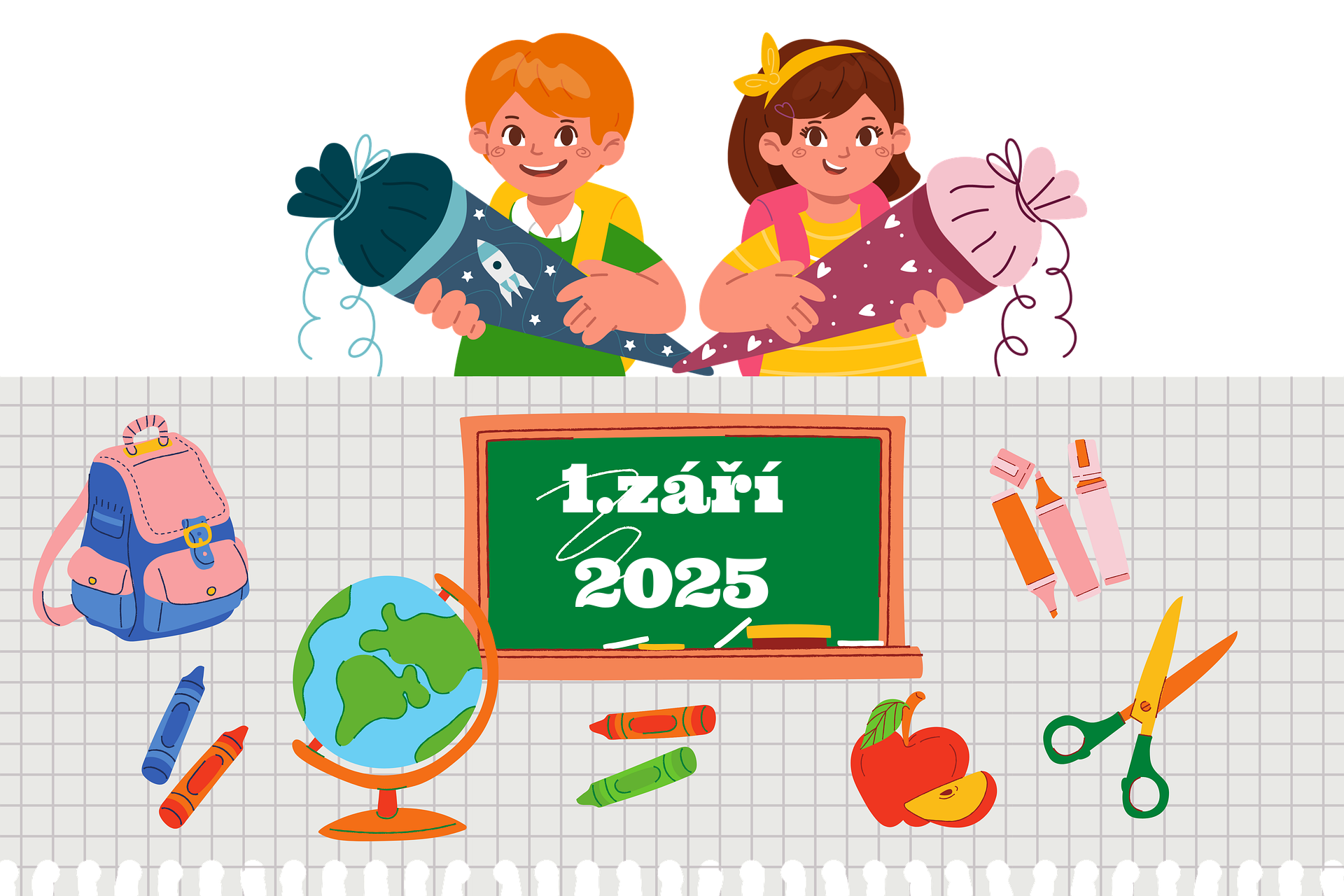 První zářijové ráno roku 2025 bylo pro naše nejmladší žáčky opravdu výjimečné. Poprvé si na záda nasadili aktovky a s trochou napětí, ale i s velkým očekáváním vstoupili do budovy školy. Hned u vchodu je přivítali netradiční hosté – obrovský tyranosaurus rex a zářivý jednorožec. Oba se postarali o úsměvy a dobrou náladu a každému školákovi předali sladké dárečky na uvítanou. Ve třídě proběhlo slavnostní přivítání, během kterého prvňáčci obdrželi krásné dárečky od obce. Do svých nových aktovek si poté uložili první učebnice a dozvěděli se, co všechno je v nadcházejícím školním roce čeká – naučí se číst, psát, počítat, ale také budou společně plnit úkoly v celoroční hře „Cesta do pravěku“. První den byl plný radosti, překvapení a slavnostní atmosféry. Přejeme všem našim prvňáčkům, aby se jim ve škole líbilo, aby poznali nové kamarády a aby jejich školní cesta byla plná radosti z objevování.